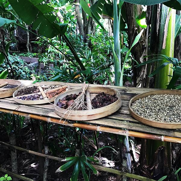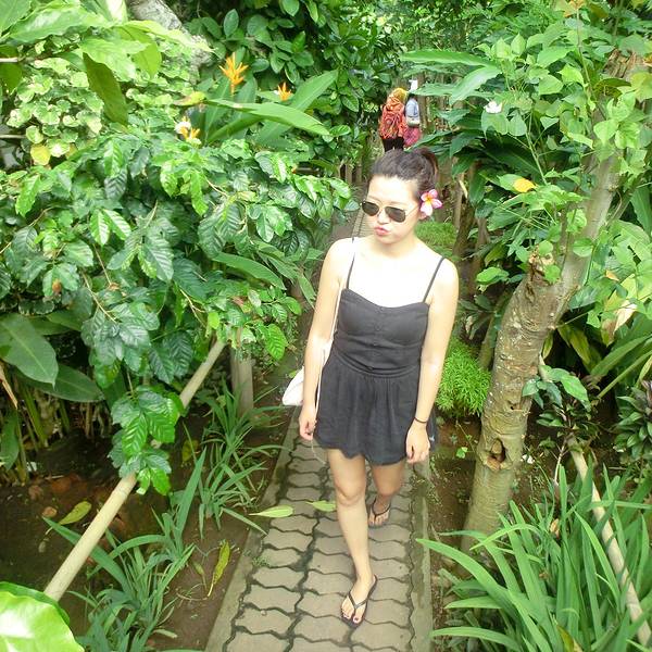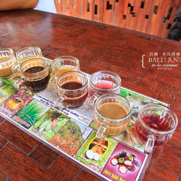 一路呼呼大睡,也不知道过了多久,醒来的时候已经到咖啡农场了。这就是咖啡豆原来的样子。司机示意我们摘一颗尝尝,说是甜的。果不其然,带着一点清甜。不知名的花,本来想问司机的,刚睡醒懵懵的骏爷后来给忘了...一路呼呼大睡,也不知道过了多久,醒来的时候已经到咖啡农场了。这就是咖啡豆原来的样子。司机示意我们摘一颗尝尝,说是甜的。果不其然,带着一点清甜。不知名的花,本来想问司机的,刚睡醒懵懵的骏爷后来给忘了。有谁知道不?圆子不大,说是咖啡园,其实也就是马么一片咖啡树。不过还是有那么点郁郁葱葱的感觉。会有一个阿婆象征性的炒炒咖啡豆。骏爷爱喝咖啡,但不是很懂。不过看着都觉得这咖啡豆味道一般。另外好养着几只猫,用来做猫屎咖啡。入座之后,服务员会端上8种饮料。从左至右分别是人参咖啡、姜茶、巴厘咖啡、柠檬草茶、热可可、洛神花茶、椰汁咖啡和山竹汁。其他饮料到底材料时分讲究、健不健康骏爷也不好评价。至于巴厘咖啡,味道非常清淡,可能是采用了活塞式冲泡,咖啡渣比较粗糙。这几杯品尝的茶饮是免费的,如果喜欢可以到农场内的商店购买。当然了,巴厘岛最有名的猫屎咖啡是要另外收费的。好吧,实在过不了心里那一关。骏爷觉得巴厘岛上类似这样的农场应该有很多个,不同的司机可能带你去的地方都不一样。骏爷去的这个地方,景色倒是不错,能望到郁郁葱葱的热带丛林。说是咖啡农场,骏爷总觉得咖啡树也好猫也好,都是幌子主要还是要你买东西。但说实话看过去都不咋地。骏爷最后买了一盒柠檬草茶当做小礼物回家孝敬凉凉。