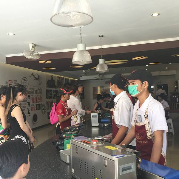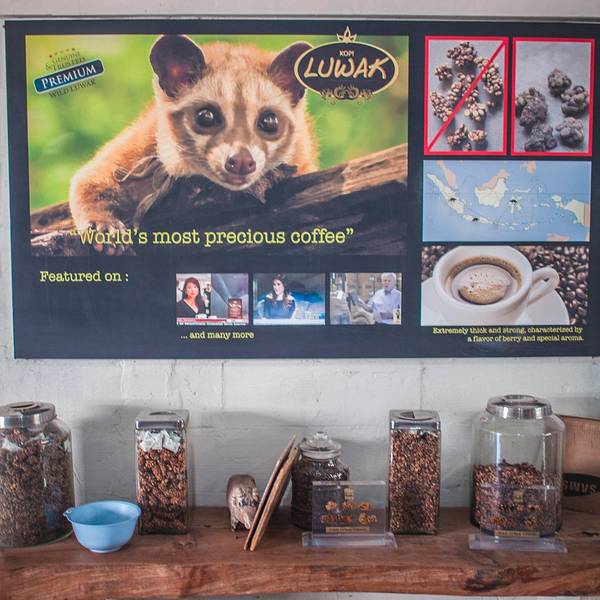 世界上最昂贵的猫屎咖啡,起源地就是印尼。 18世纪初,荷兰人在印尼殖民地苏门答腊和爪哇岛一带建立了咖啡种植园,并且禁止当地人采撷和食用自己种植的咖啡果子。印尼当地人无意中发现麝香猫爱吃这些咖啡果子,并且会在拉大便的时候把豆子原封不动的排出来。麝香猫只会挑最熟最甜的咖啡豆食用,这本身就是一种自然筛选;其次,当地人发现这些豆子经过猫咪胃的发酵,产出的咖啡比普通的更好喝了。香醇可口的猫屎咖啡渐渐声名远扬,成为国际市场上的抢手货。 在这家猫屎咖啡工厂,可以参观到这种咖啡生产的全过程。长在树上的咖啡果,关在笼子里的麝香猫,展示柜里带着咖啡豆的猫屎…… 当然了,咖啡豆会经过很多复杂的工艺,反复清洗烘焙炒香,从卫生上来说是不会有什么问题的。但从心理上来说,我实在是无法接受从粪便里拣出来的咖啡豆啊!而且圈养麝香猫的行为也让人有点残忍呢~ Tips 地址:Jl. Pulau Moyo,Denpasar Sel.,Kota Denpasar, Bali 时间:9:00-17:00 门票:免费