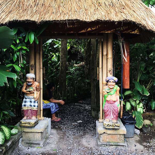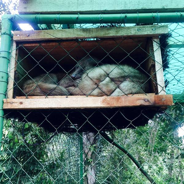 于是我们在庙里躲了一会雨,雨停后就出去了,司机之前说过在停车场等我们,地方不大很容易找,不过圣泉寺出来就是比较划算的一个纪念品市场,我们在这买了一些纪念品回来都送人了,这里的商贩都会说简单的中文,已经百炼成精了,所以只有拼命砍价,最后买的木雕纪念品都是一两美元一个,超划算又有特色。 去脏鸭餐厅的路上司机问我们去不去喝咖啡,那肯定就是他们公司定点有提成的地方啦,不过由于司机一路上很热情服务也好,所以我们果断就去了,不像国内那种购物景点,这里其实也是个正常的咖啡馆,消费也正常,比国内猫屎咖啡便宜多了,介绍猫屎咖啡怎么生产出来的,欧美人貌似很喜欢,我们去的时候已经快坐满了。值得来体验一下 里面躺着的就是制造猫屎的麝香猫
