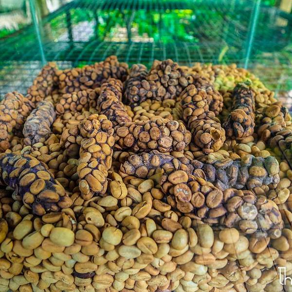 在这家猫屎咖啡工厂,可以参观到这种咖啡生产的全过程。长在树上的咖啡果,关在笼子里的麝香猫,展示柜里带着咖啡豆的猫屎…… 当然了,咖啡豆会经过很多复杂的工艺,反复清洗烘焙炒香,从卫生上来说是不会有什么问题的。但从心理上来说,我实在是无法接受从粪便里拣出来的咖啡豆啊!而且圈养麝香猫的行为也让人有点残忍呢~