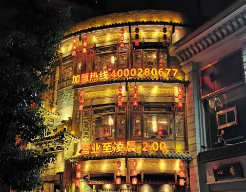 非常火爆的一家火锅店,这家店号称“四川传统主义火锅”,装修就是非常典型的古代武侠风格,到处都是行侠仗义的痕迹!口味地道,摆盘漂亮,招牌菜“花千骨”,更是鲜嫩麻辣,有嚼劲,是不可错过的一道特色菜。