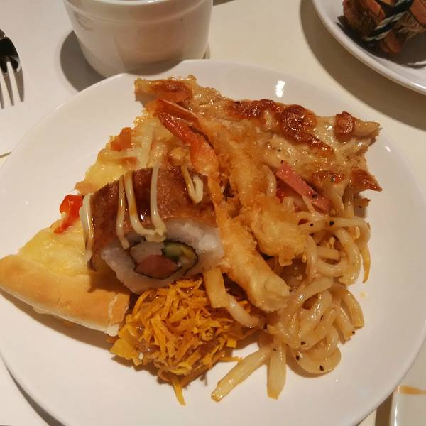 甜点都不好吃,糖粒没化开,味道不好。迷你大闸蟹,味道不好吃,又小又空,可以略过。披萨放了好久