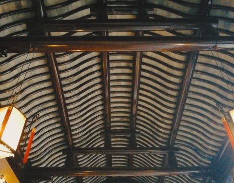 燕誉堂为狮子林全园主厅,原是园主宴客所用。燕誉堂堂名出自《诗经·小雅·车舝》“式燕且誉,好而无射”,意为燕而娱乐、始终不已之意。此厅是苏州园林中较为有名的鸳鸯厅。梁上站三位神仙一位小童,有吉星高照的意思,雕塑惟妙惟肖。能够在此窥探出我们祖先建筑之精妙。