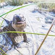 凯恩斯有一座蜥蜴岛,在这座海岛上生活着数千只的大型蜥蜴,有着非常多的品种,而最多的就是哥斯拉的原型,长相非常的可怕。但其实他们非常的温顺,你不去招惹他们,他们根本就懒得来理你,他们晒着太阳,迈着慢慢的步伐在沙滩上行走,时而还会下海游会泳,真的非常的逍遥自在。