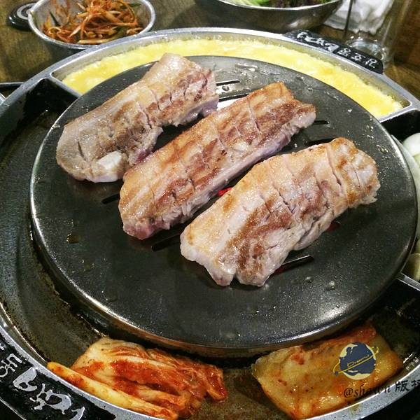 韩国著名主持人姜虎东开的烤肉店,烤盘比较特别,能一盘三吃。