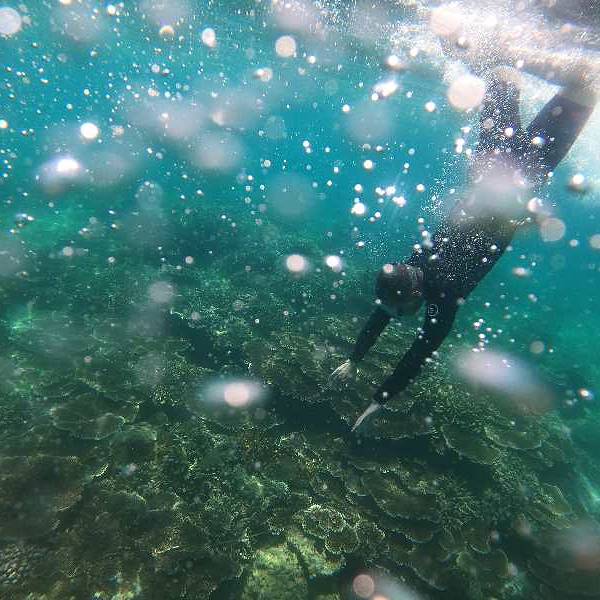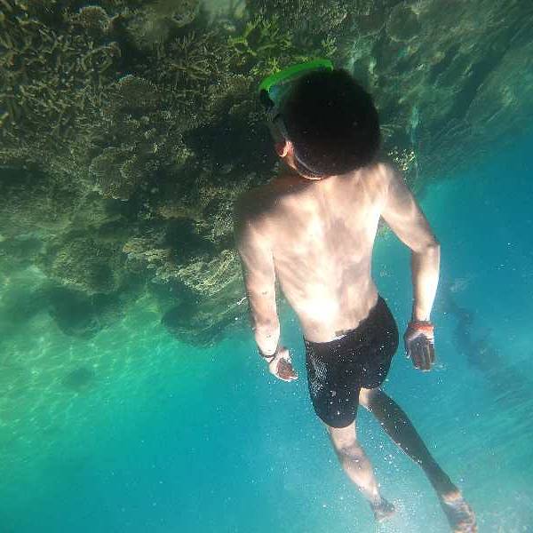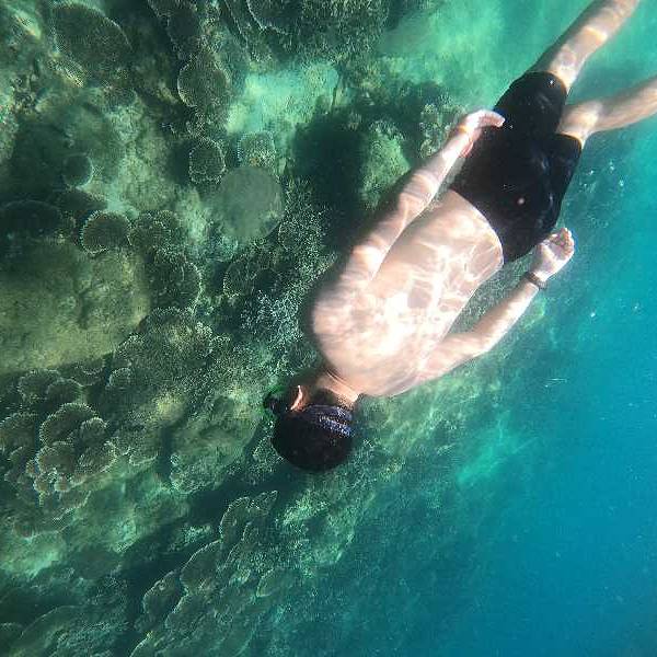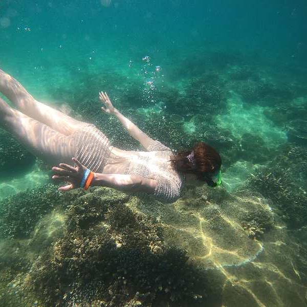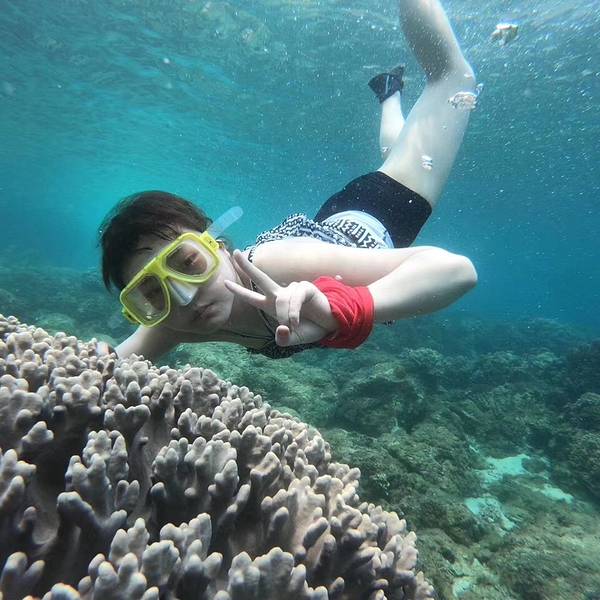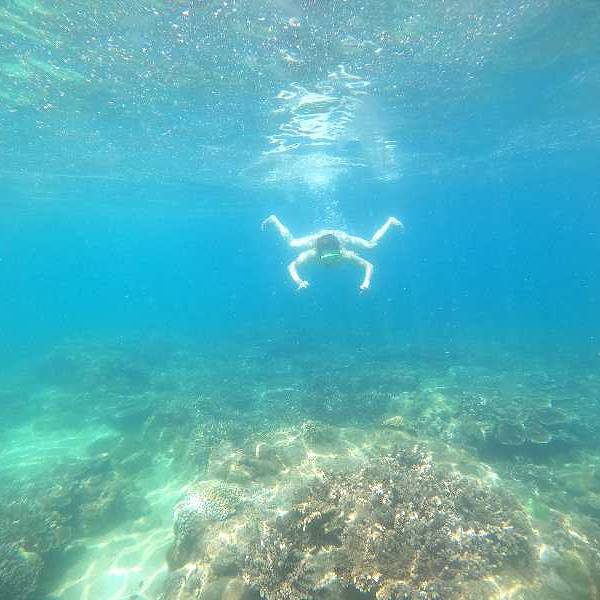 浮潜、珊瑚、小鱼、沙滩、烧烤。