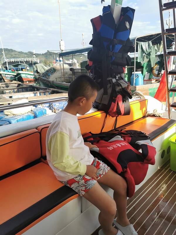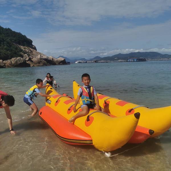 香蕉船在海上是比较容易翻船,坐之前内心也是小害怕了一下,好在跟我们一起坐的还有小朋友,所以为了不要吓到小朋友,拖着香蕉船的船便没有开得太快,依然还是有一个小娃娃被吓到嚎嚎大哭,伴随了哭声,浪花撞击声,还有我们尖叫声,完成了此次体验。