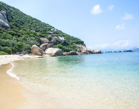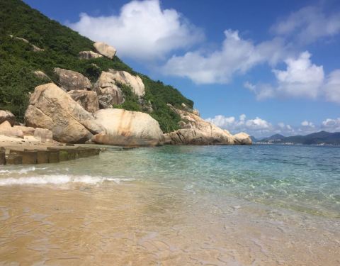 2、可在海口乘海南东环高铁,在万宁站下列车,乘车到达神州半岛旅游区,从区码头乘快艇约20分钟即到岛上。或者到达渔樵人家户外码头租渔船登岛。