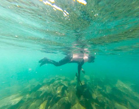 回去后,我和那个老乡跑到游艇的顶楼,往海水里跳,好刺激。不过,当你走过去的时候,它们跑的肯定比你快早上八点出发,今天出海。9点码头出发,12点返回。网红灯塔先和可恩浮潜了一会儿,上午海水还是有点冷的,不一会儿他就冻的上船了。