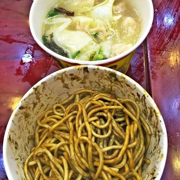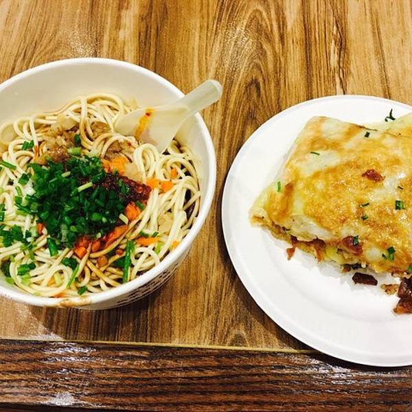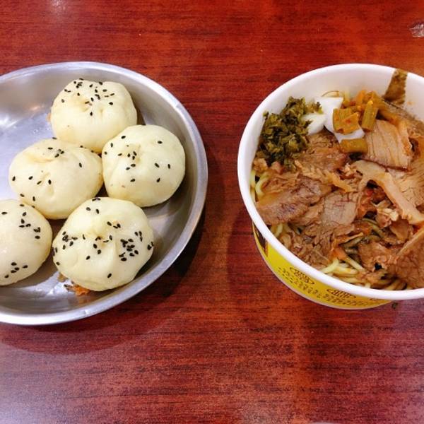 一碗牛肉热干面,一份水煎包~我是不太吃得惯热干面,个人不太喜欢 但是男朋友说很好吃😋 里面的牛肉全被我吃啦!美味👏 水煎包蘸了辣椒醋 味道也是棒棒哒👍算是打过卡啦❤️