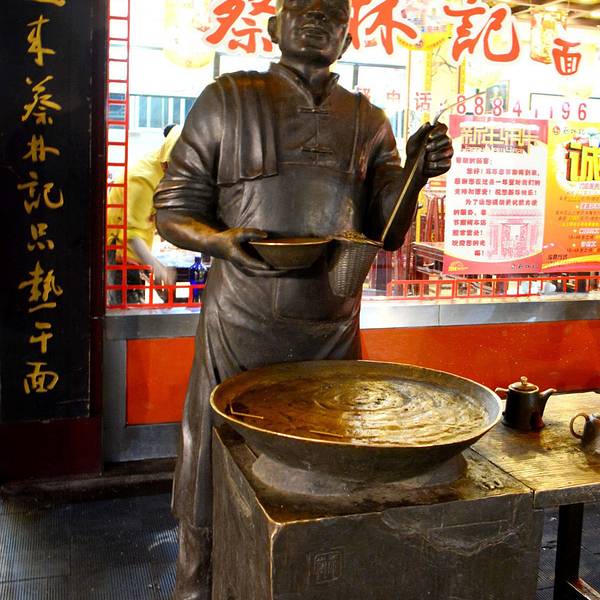 户部巷里名声最大的应该就是蔡林记武汉热干面【推荐指数三颗星】白天如果来根本没法拍到这个铜像,真的全是人啊,里面坐不下,很多人就端着碗面站在门口吃啊!第一次路过时便被这种阵势吓退了,于是计划晚点过来吃,结果晚上快9点来竟然已经打烊了,只怪自己没看清营业时间:6:30-20:30