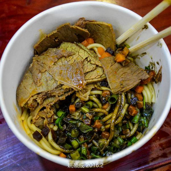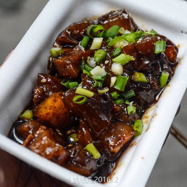 - 路边摊的酱牛筋,口味很重,但很好吃!三颗星,强烈推荐!加牛肉的是16元,牛肉真是厚厚的好几块