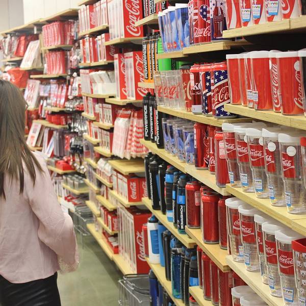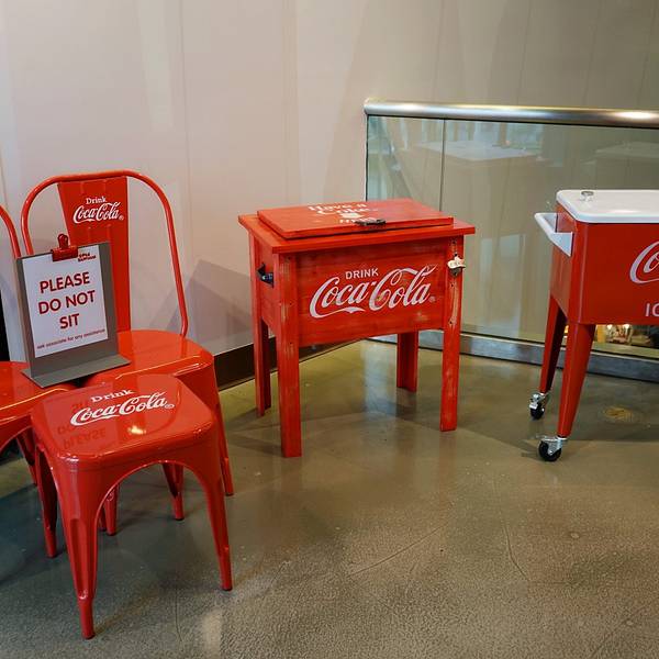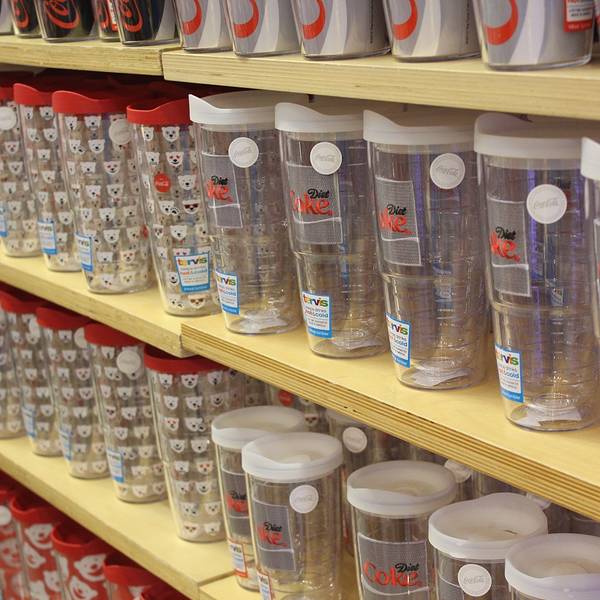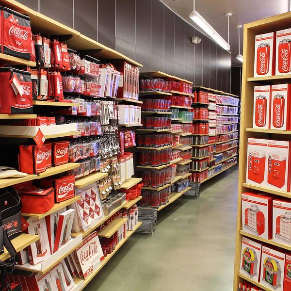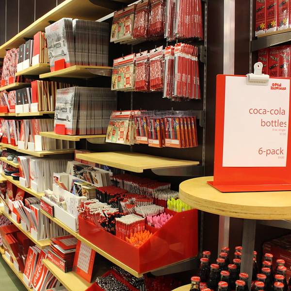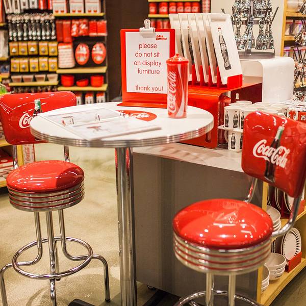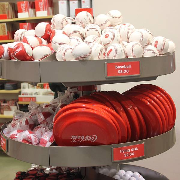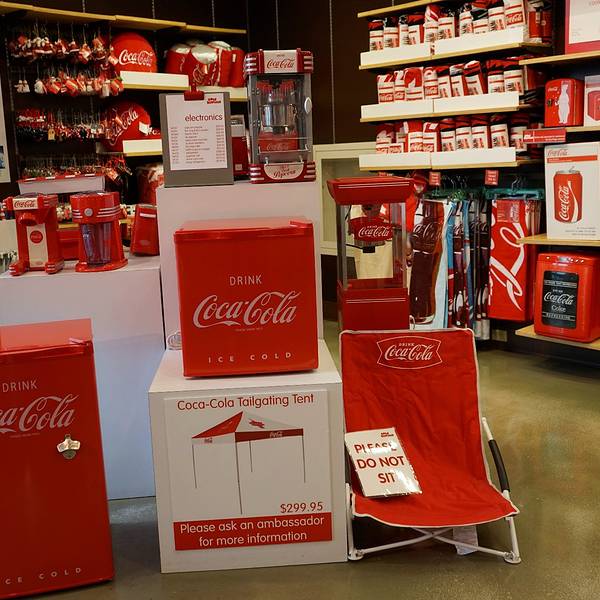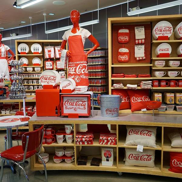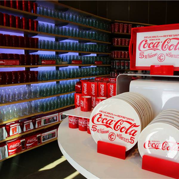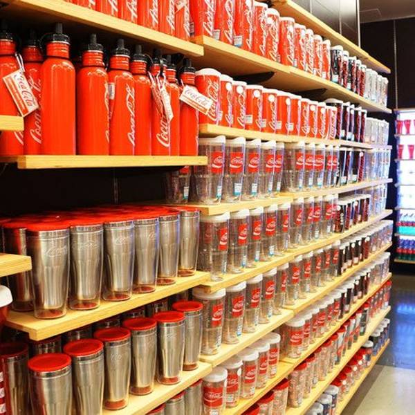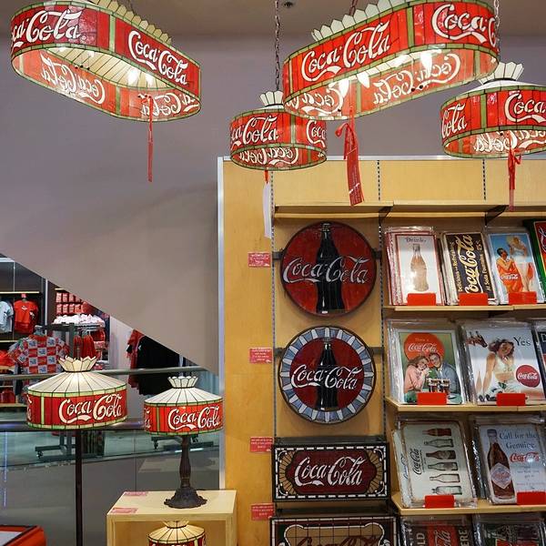里面的商品从玩具、文具、围裙到服装、台灯、饰品,所有的东西都印有“可口可乐”的商标、吉祥物及历史故事。这里还是收藏家的天堂,店内出售各年代各国可口可乐公司产品的包装瓶,还有成百种不同样子的可口可乐玻璃杯。