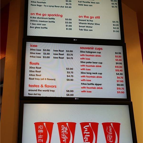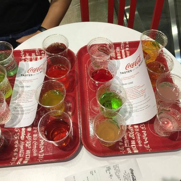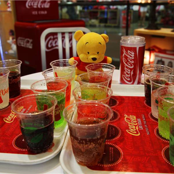 可口可乐旗舰店 亮点:售卖全球16种口味的可口可乐 专卖店内出售着各种可口可乐的周边产品,比如T恤衫、玻璃杯、磁铁、开瓶器、帽子等。这里还是收藏家的天堂,店内出售各年代各国可口可乐公司产品的包装瓶,俨然像一座可口可乐博物馆。位置就MM巧克力豆的旁边,大门是经典的可口可乐瓶造型令收藏者疯狂的各种周边位于三楼的品尝区全球16种口味的可口可乐套餐,只需要8刀