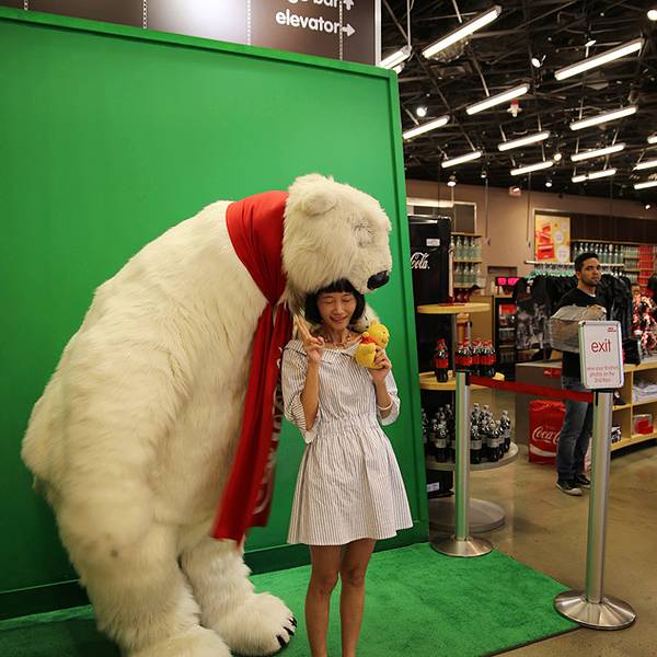 都说了是隔壁 那也不可能错过可乐商店的 这个国内似乎还没有吧一进门先直奔这只大贱熊 他在微博上有个视频 相信看过的童鞋都会被他又贱又萌的样子圈粉的 他就在一楼 专门有一块区域是跟他合影的 会有官方摄影师(...