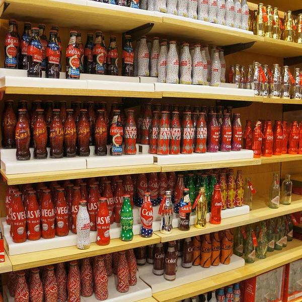 离开M&M巧克力不远,专卖店内出售着各种可口可乐的衍生产品,这里还是收藏家的天堂,店内出售各年代各国可口可乐公司产品的包装瓶。这家店造型奇特,商店内还有成百种不同样子的可口可乐玻璃杯。来到这里就像来到一座可口可乐博物馆一样。