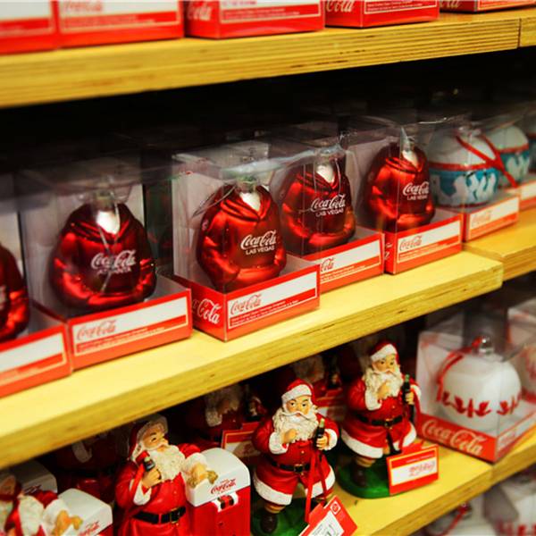 里面的商品从玩具、文具、围裙到服装、台灯、饰品,所有的东西都印有“可口可乐”的商标、吉祥物及历史故事…