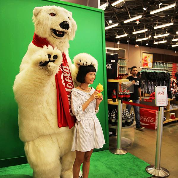 Cocacola的专卖店东西还是比较多样化的,琳琅满目各种周边产品,喜欢的可以去尽情淘。对了,吉祥物大白熊会不定时出现,可以与他合影,工作人员会帮你拍照一份到手机里,当然也可以买走他们拍照版本。