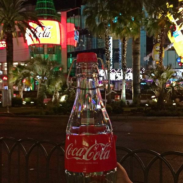 出来的时候天已经全黑了,拉斯维加斯的夜景相当迷人。下一站可口可乐和M&M豆概念店,位置快靠近最南边的MGM了,稍稍有些远,感觉从巴黎再往南的路边晚上会稍微乱一些,天桥上有很多乞丐,路边也有一些飘来飘去的无业游民。