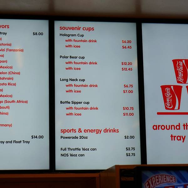 位置就MM巧克力豆的旁边,大门是经典的可口可乐瓶造型。亮点:售卖全球16种口味的可口可乐