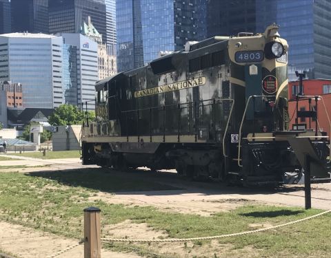 一个大广场,离多伦多电视塔很近,开车准备上塔的时候路过就去了,好像是蒸汽火车纪念广场,有很多火车头,拍拍照挺有意思的。还偶遇一只黑松鼠️