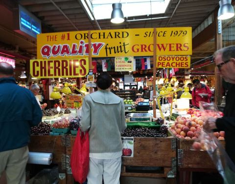 ...们因为住的酒店也没有煮饭的东西,所以它的生鲜类我们没法采购,顺便购买了一些水果,有些比国内便宜加拿大的这个市场主要还是以吃为主,当然作为游客的我们因为住的酒店也没有煮饭的东西,所以它的生鲜类我们没法采购,顺便购买了一些水果,有些比国内便宜