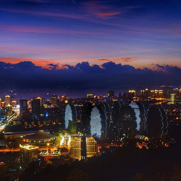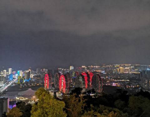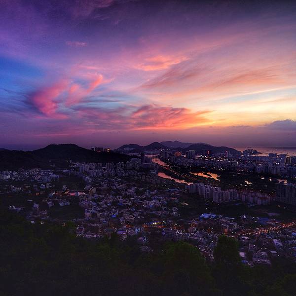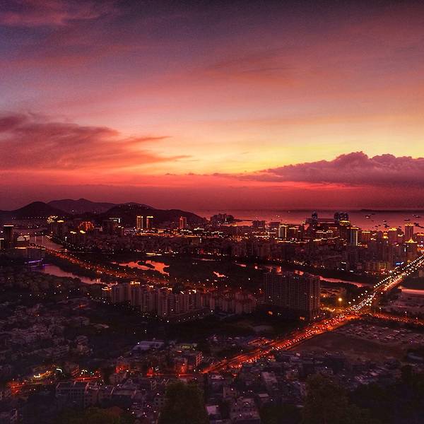 慢慢的,天色越来越暗,华灯初上,在这里还可以观欣赏到霓虹闪烁的三亚夜景🌌。徐徐清风,拂过脸面,看着灯光琉璃之中的城市,真是一种超美的享受。