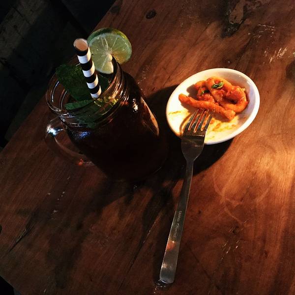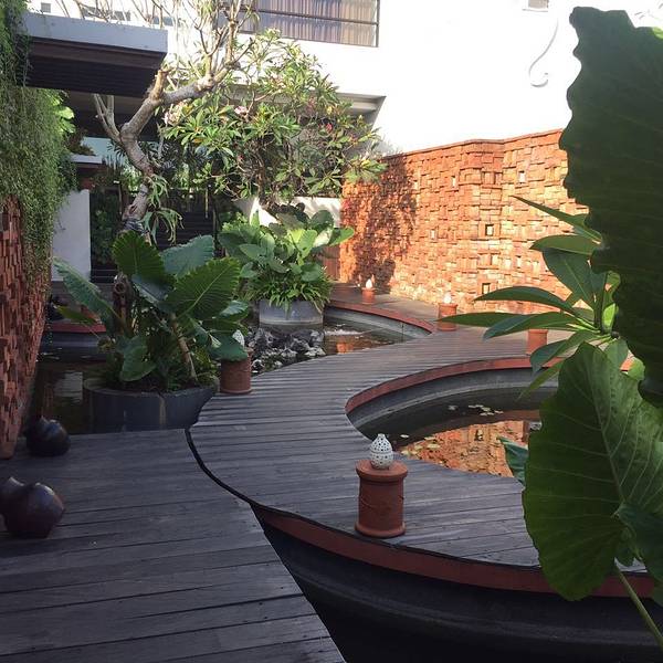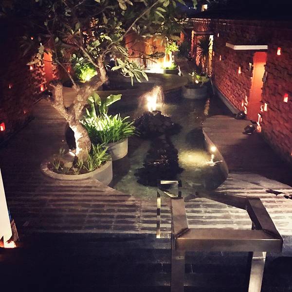 我们定了一家,先在酒店放下了行李,就出发去水之恋水疗馆,我们是在网上就定好的项目,在电话预定,先生订了热石(298RMB),给我订了露露(338RMB),这家SPA馆有会说中文的工作人员。预定了下午4点,时长2小时。整个SPA下来就6点。水之恋内部装饰屋里装饰水池接着,我们吃了饭,在一家餐吧喝了点东西。点了一杯HOME MADE ICE TEA 和一杯莫吉托,这里的莫吉托消费是99000卢比,SO贵的~