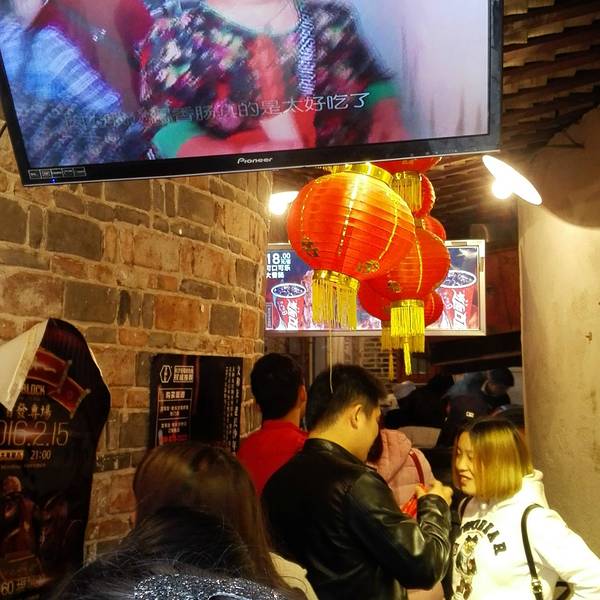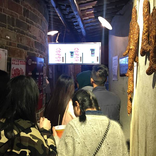 【店内环境】文和友老长沙大香肠店就是一个小卖铺,窄窄的巷子,一米多的收银台,里面几个帅哥在热火朝天的忙碌着,没有座位啦!
