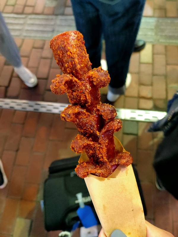 ...在话一般般,就是炸腊肠,并没什么惊艳之处,外皮很焦,里面肉挺香的,反正这一趟只吃了一根再没买了