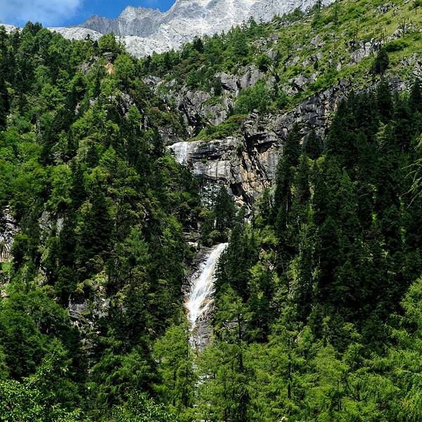其实雪山的瀑布挺多,但是能够接近的却不多从雪山上奔流而下的瀑布,只能看到其中一段,更高的被山石挡住了视线。其实雪山的瀑布挺多,但是能够接近的却不多。
