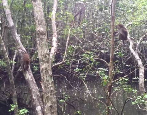 从洞中出来的栈道边是红树林,栈道上很多猴子,如果拿了吃的得小心。红树林游中跟精彩的部分红树林游中跟精彩的部分。蝙蝠洞虽然不大,蝙蝠很多,能较近距离的观察。从洞中出来的栈道边是红树林,栈道上很多猴子,如果拿了吃的得小心。