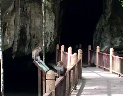 很臭,还要买门票,1马币而已,不要太计较哈哈。从这里穿出去,就会到蝙蝠洞了。出了洞,遇到猴子从这里穿出去,就会到蝙蝠洞了。