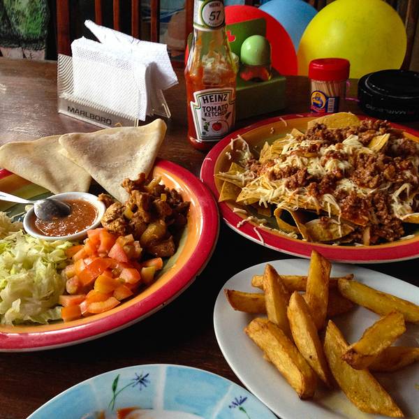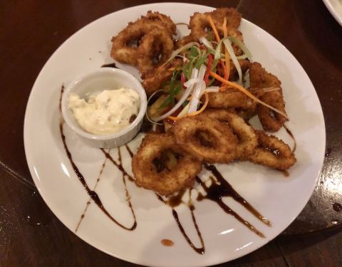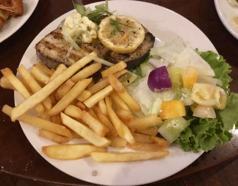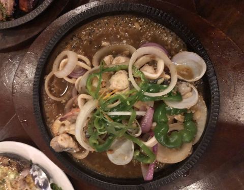 这家餐厅很有特色,是长滩岛的网红餐厅,去之前就打定主意一定要吃到的。到长滩岛的第二天就去了。怕晚上没座儿,下午提前预定好。海边看完日落走过去吃晚餐。餐厅装饰古朴,墙上名画“赝品”比比皆是。服务生很专业,服务很好。点菜基本按着网上推荐菜走,当然少不了点岛上美食:烤鸡和特色披萨,还有菲律宾生力啤酒。菜品啤酒味道都好,只是服务生说我们人多要点一只烤鸡,这一只烤鸡吃到撑,味道又淡,要了胡椒和盐,本着不浪费的精神合力基本吃完。 进餐全程有驻唱歌手演唱(原来以为只有晚餐才有,下午订餐、路过时都有歌手在唱),“名画”、伴唱、烛光、美食美酒,很不错的体验。