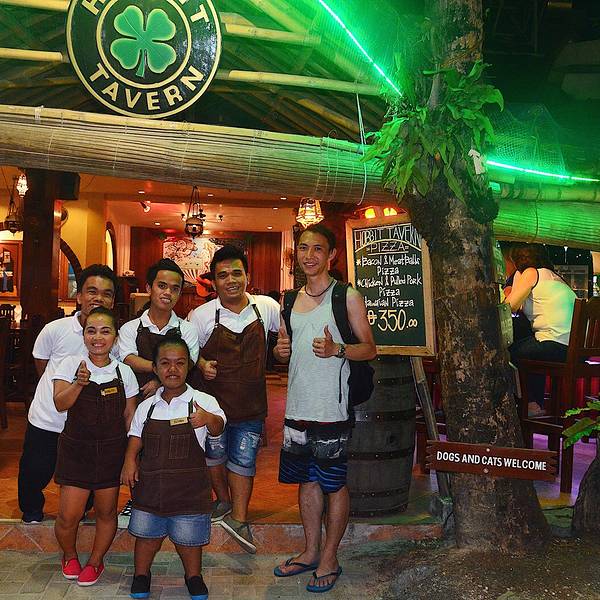 位于Dmall的霍比特人餐厅是岛上颇有特色的餐厅了。菲律宾有一种当地人,个子普遍矮小,基本上都在150cm以下,像小矮人一样。霍比特人餐厅的服务员都是这种小矮人,所以才取名霍比特。
