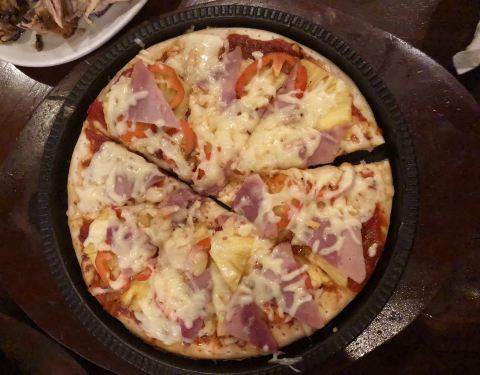 - 点菜基本按着网上推荐菜走,当然少不了点岛上美食:烤鸡和特色披萨,还有菲律宾生力啤酒