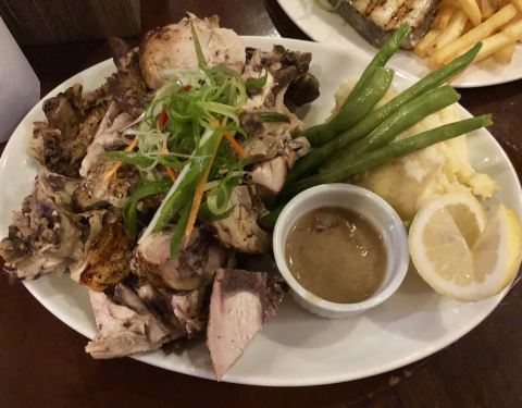 这家餐厅很有特色,是长滩岛的网红餐厅,去之前就打定主意一定要吃到的。到长滩岛的第二天就去了。怕晚上没座儿,下午提前预定好。海边看完日落走过去吃晚餐。餐厅装饰古朴,墙上名画“赝品”比比皆是。服务生很...这家餐厅很有特色,是长滩岛的网红餐厅,去之前就打定主意一定要吃到的。到长滩岛的第二天就去了。怕晚上没座儿,下午提前预定好。海边看完日落走过去吃晚餐。餐厅装饰古朴,墙上名画“赝品”比比皆是。服务生很专业,服务很好。点菜基本按着网上推荐菜走,当然少不了点岛上美食:烤鸡和特色披萨,还有菲律宾生力啤酒。菜品啤酒味道都好,只是服务生说我们人多要点一只烤鸡,这一只烤鸡吃到撑,味道又淡,要了胡椒和盐,本着不浪费的精神合力基本吃完。 进餐全程有驻唱歌手演唱(原来以为只有晚餐才有,下午订餐、路过时都有歌手在唱),“名画”、伴唱、烛光、美食美酒,很不错的体验。