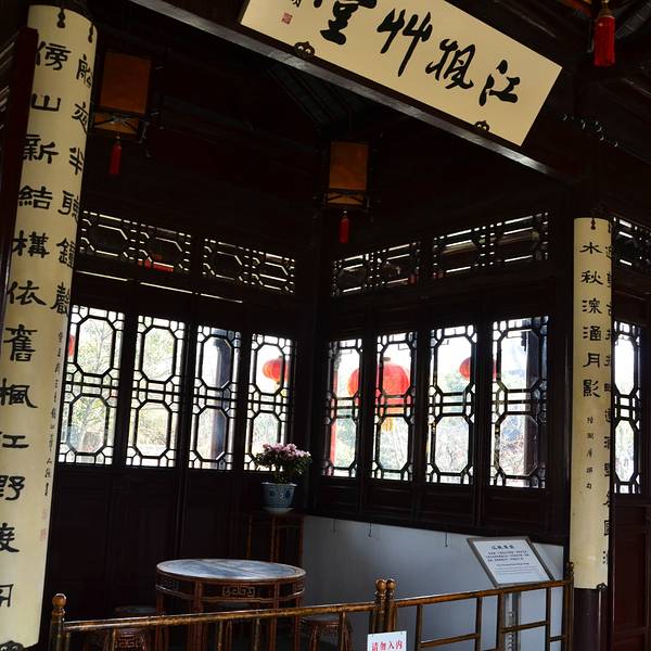 江枫草堂位于江苏省苏州市苏州市姑苏区枫桥路底的枫桥景区内,景区门票25元1人,身高在1.4米以下儿童(含1.4米)、70周岁(含)以上老人免费;学生凭学生证购票享受半价优惠,开放时间:8:00-17:00,电话:0512-65575100,乘坐市内公交33、44、301、307、游3、9、10、45路,步行十分钟左右就可达到枫桥景区,草堂在景区的南面的一枝园内,朝南步行两分钟左右就看到江枫草堂是一枝园内的主厅,入园就映入眼帘草堂附近有一个孔雀园,里面养着孔雀江枫草堂是古代文人雅集的场所,柱子上的楹联有浓郁的文化氛围厅中“江枫草堂”饱满秀雅的大字是苏州四大才子之一的文征明手书草堂正中有一个圆桌,是竹制加爵,竹子正直,有气节,是文人们崇尚的精神象征竹家具雕刻讲究,富浓厚的中国情节、传统工艺草堂里还有一架古琴,文人墨客曾在此抚琴草堂的后面是涛涛大运河草堂背靠运河,地理位置绝佳,风景十分优美草堂外面是一个小巧典雅的庭院,庭院内回廊、假山、池塘,典型的苏州园林建筑风格江枫草堂位于人迹罕至的枫桥景区南部,参观的游客不多,环境相对比较清静,游玩半小时差不多了,一年四季都适合来游玩,景区内有小卖部,外面有很多苏帮菜餐厅,用餐方便,枫桥路上有多家连锁酒店,住宿也便捷。