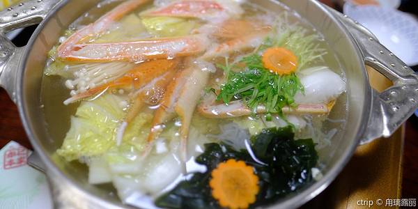 今天的名古屋风好大,于是午饭选择了这家服务可以让人感到特别温暖的店☀️。穿着和服的服务生把你领到电梯➡️帮你按好楼层➡️到了指定的楼层另一位服务生又把你送上座位......这家店的店内装修好特别,像是走...今天的名古屋风好大,于是午饭选择了这家服务可以让人感到特别温暖的店☀️。穿着和服的服务生把你领到电梯➡️帮你按好楼层➡️到了指定的楼层另一位服务生又把你送上座位......这家店的店内装修好特别,像是走在钟乳洞里。我的餐桌前是一条大大的船,还有蓄有3~5摄氏度的海水的水池。这个季节吃上一个热乎乎的蟹腿锅,再喝上一碗味道超赞的蟹肉粥,浑身上下都舒服了。再教大家一个诀窍,如果想吃很贵很有名的店,就去吃它家的lunch才划算哦!