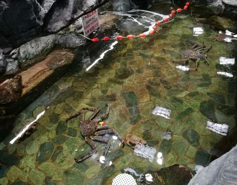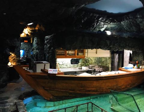 店里布景感十足,包括洞穴餐厅、捕蟹船、日式小庭院等都一一到位。秋冬真是螃蟹肥美丰满的时节,蟹肉鲜美自带甘甜。在这里可以生着吃、煮着吃、烤着吃、涮火锅吃、卷进寿司吃、做成蟹肉芙蓉蛋吃、烤了蟹盖来吃,花样繁多,让人意想不到。