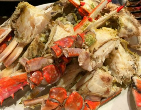 - 价格不便宜,但是能够一次吃到很多种吃法的螃蟹还是挺不错的,特别喜欢吃一种好像是酱过的螃蟹,还挺好吃的