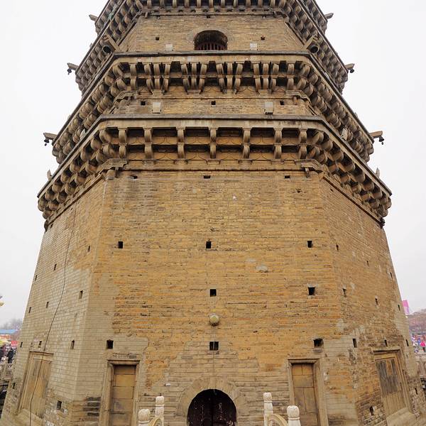 郓城荒塔,又称观音寺塔,观音寺塔为八棱四门楼阁式砖塔,现存四层,由精美的砖雕斗拱组成塔檐。东、西、南、北四面各设一券顶坤门,其余四面为砖雕景窗。塔心室和佛龛顶部,由层层砖斗拱环砌成拱顶,斗拱制作精良,层层内收,结构严谨,错落有致,有鬼斧神工之妙,连塔内回廊顶部,也由砖斗拱精砌而成。