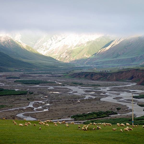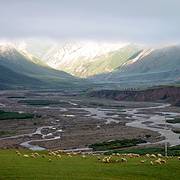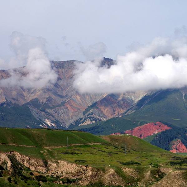 这条从野牛沟到祁连县的公路风景不错。河流、山谷、草场、不同颜色的山