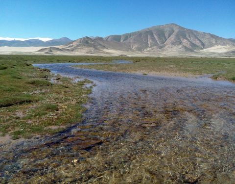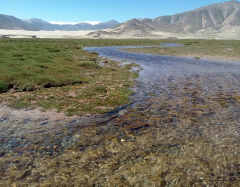三岔河特大桥底下,围绕柽柳豁口,我们在109国道的另外一边发现了很深的野牛沟。把车开进沟里,就发现这里泥坡上有些阔叶的草本,它们是食物极度匮乏的潜叶类昆虫的最爱。高原上气温较低,太阳出来后,也需要有段时间。随着温度的升高,冰球融化,花部展开,才可以看到昆虫们逐渐在活动。