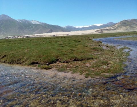 河流、山谷、草场、不同颜色的山。这条从野牛沟到祁连县的公路风景不错。路遇大队人路边宿营野餐,我们也欣然的加入了。
