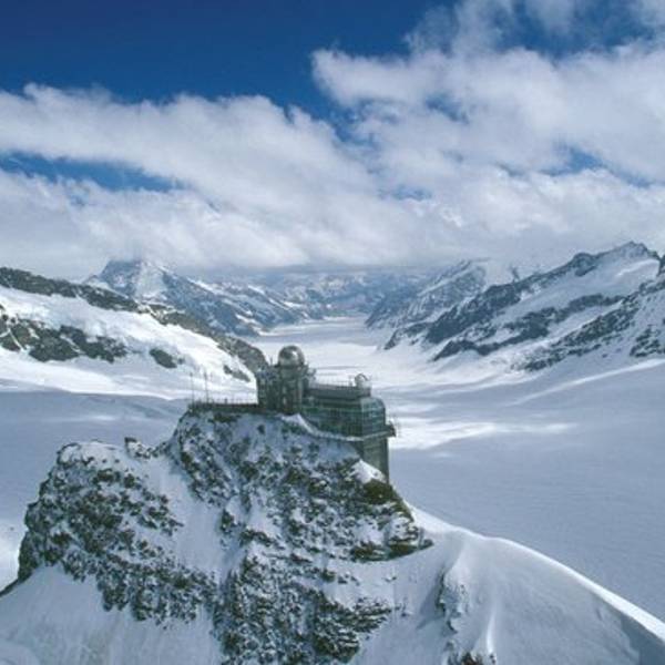 抵达欧洲最高的火车站,有一部电梯可以直达Sphinx Terrasse斯芬克斯观景平台,那里有著名的360的回旋瞭望台,由此可以观赏到阿尔卑斯山惊心动魄的全景。天气好的时候,可以瞭望到法国境内的孚日山脉和德国境内的黑森林。