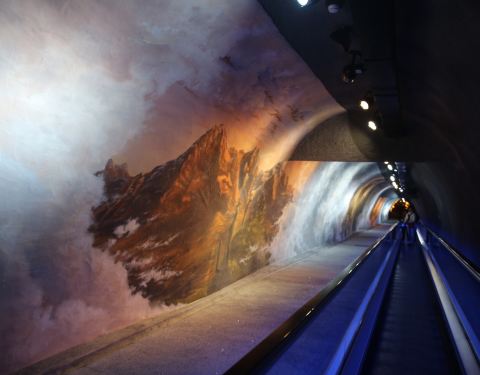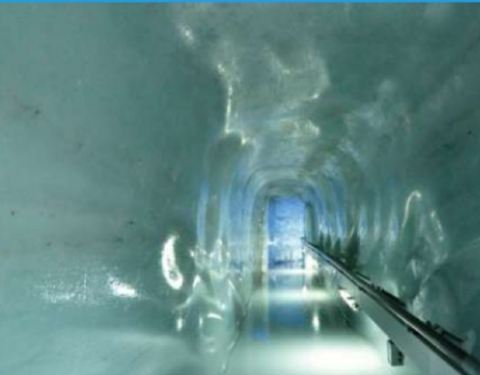 这实际上是小火车少女峰站到少女峰顶观景台的隧道。由于欧洲屋脊少女峰山上终年积雪,挺冷的,冰雕自然常年不化。仅就冰雕而言,着实一般,没法和哈尔滨的冰雪大世界相比。
