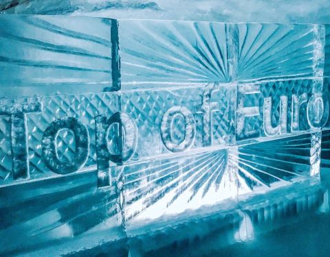 里面有许多冰雕,里面全是用冰修建而成的,有一些冰雕,还有一个欧洲之巅的标志 给人种冰河世纪的神奇感受