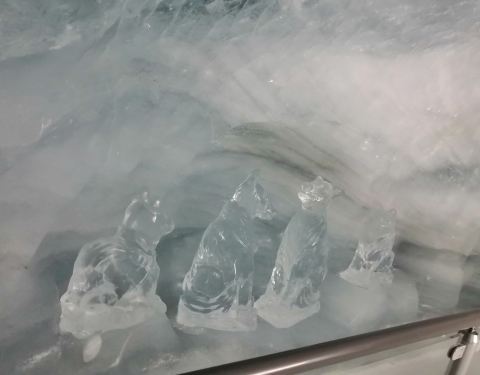 火车到了少女峰,通过长长的走廊就来到洞穴状的冰宫,冰宫地上有些滑,寒气逼人,内部那些晶莹剔透的冰雕,造型各异,十分有趣。