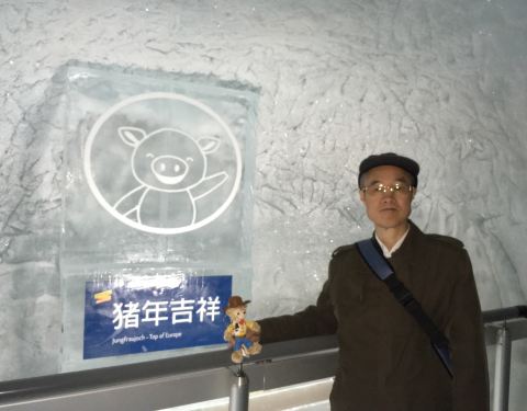 在少女峰⛰️山顶,海拔三千多米处,有很多冰雕,其中有中国的猪年吉祥!